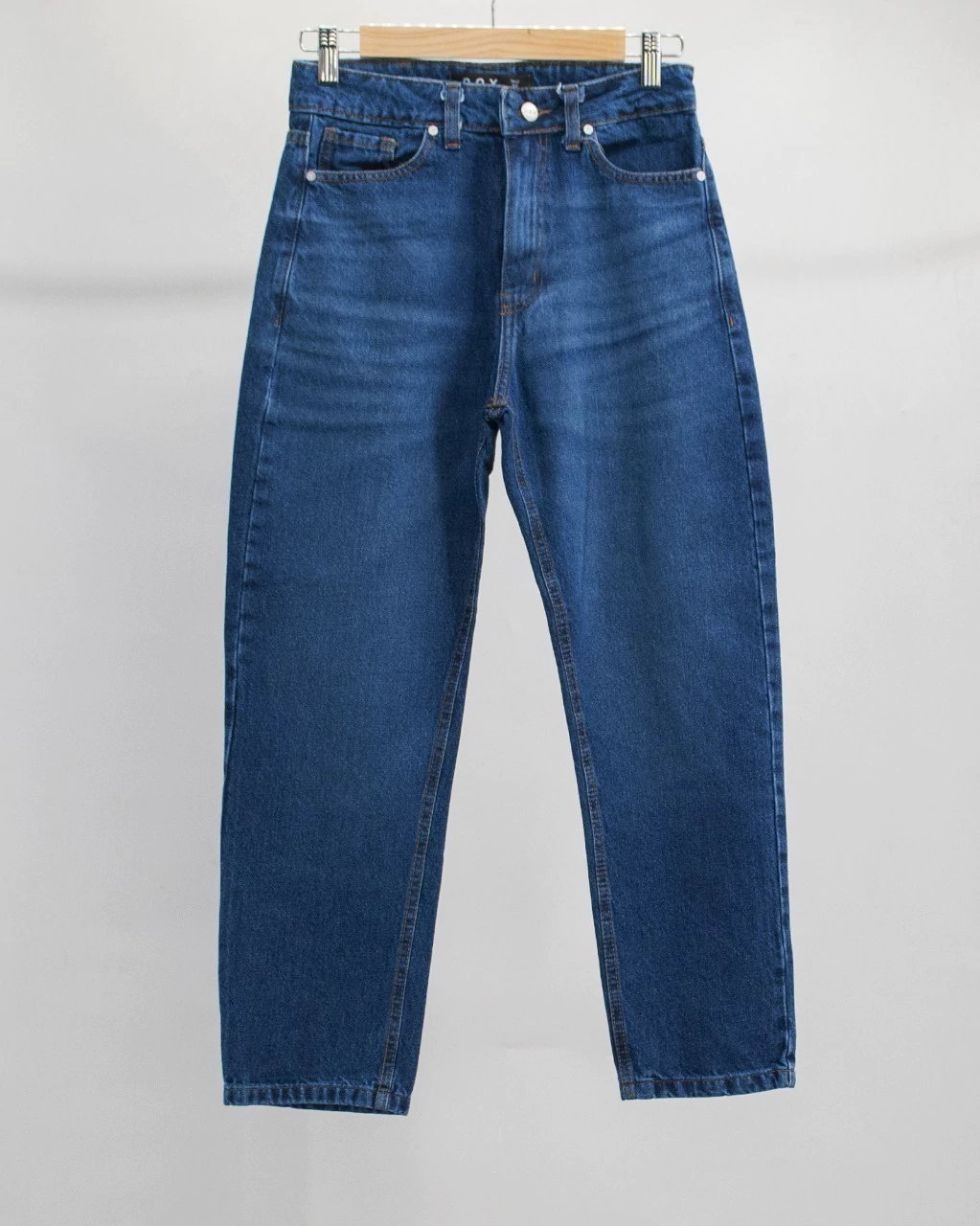 Jean Mom Azúl localizado y efecto desgaste. Nox.