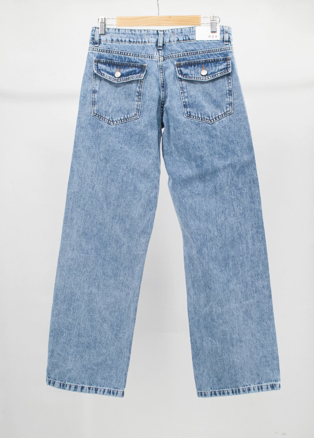 Este jean rígido se destaca por su corte amplio que aporta comodidad y libertad de movimiento, ideal para quienes buscan un estilo contemporáneo.