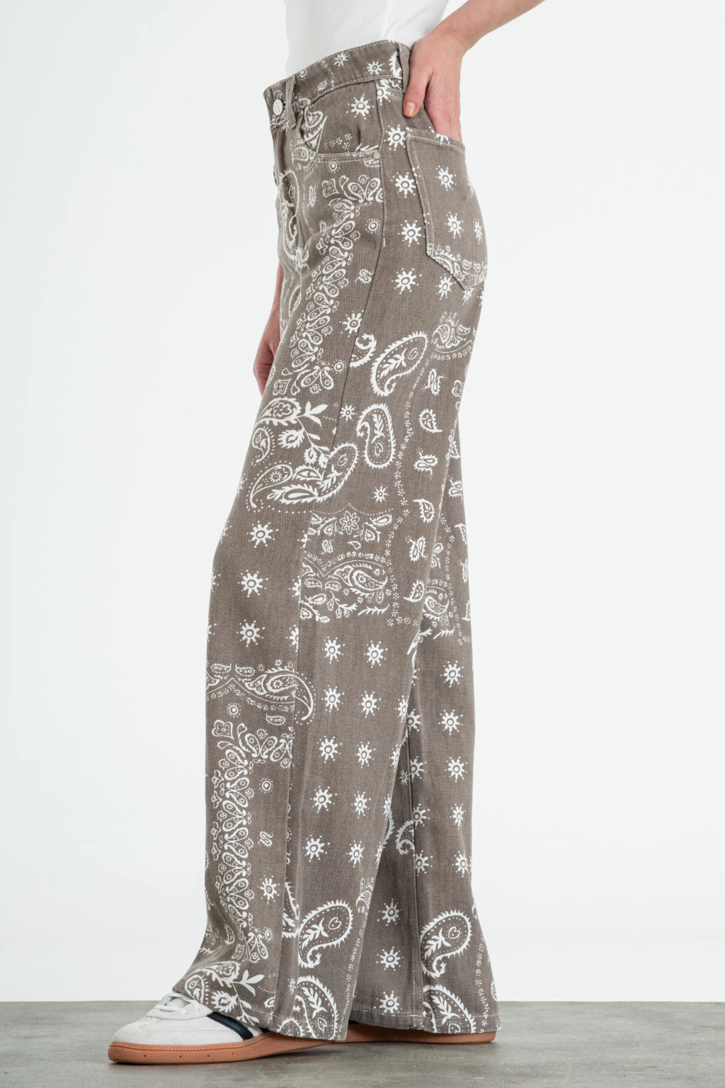 Pantalon Wide Leg de Jean Bandana Chocolate